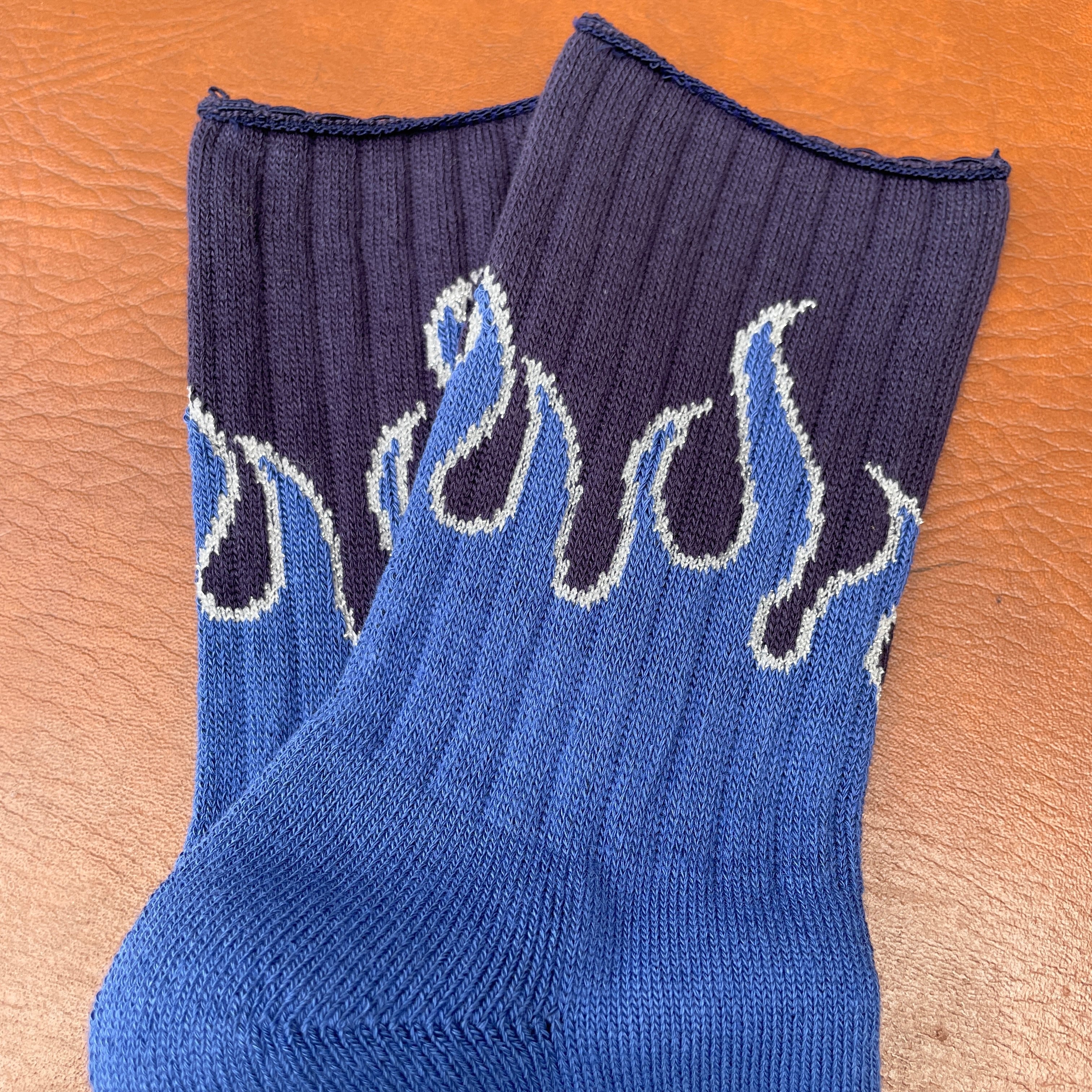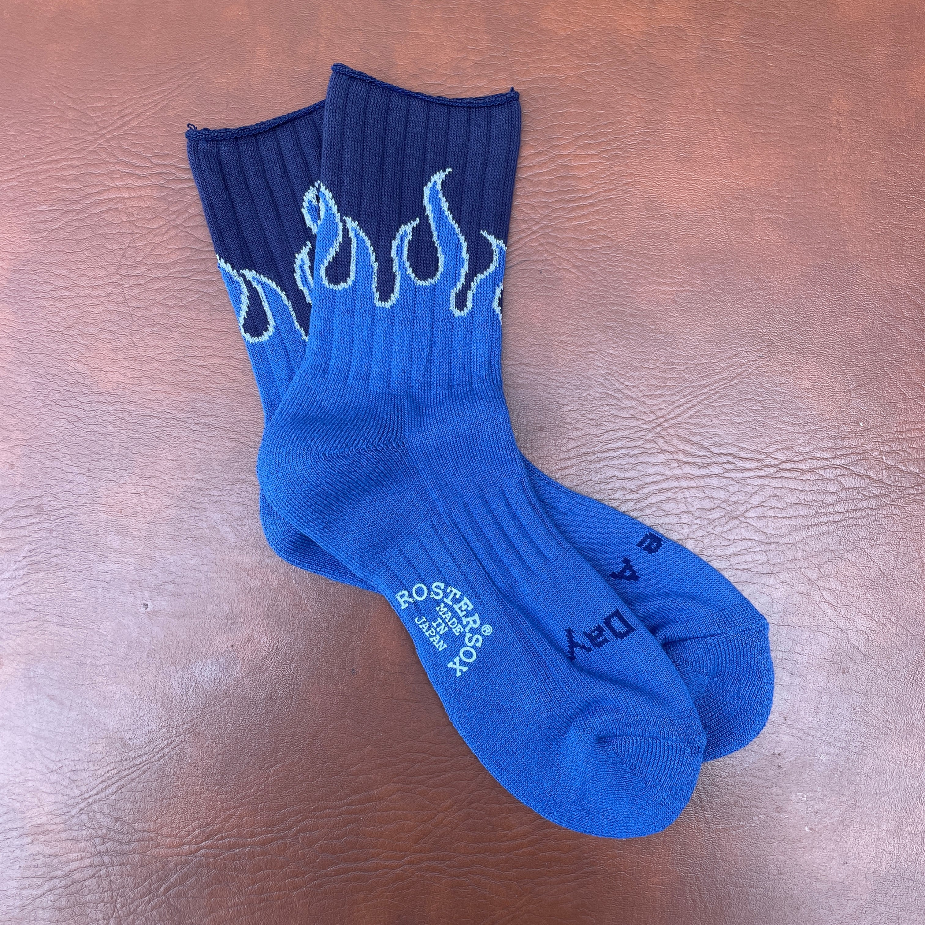 ROSTER SOX(ロスターソックス) RS-483 "FIRE" 靴下 日本製 ブラック×ブルー