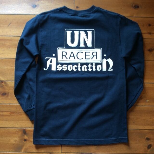 バイクも車も飛ばさず安全に走りましょうの気持ちと戒めを込めて、「UN RACER Association」のプリント。